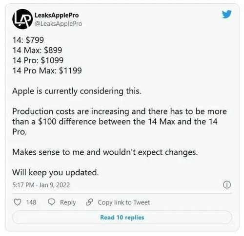 关于苹果17的价格和发布时间,目前还没有确切的消息。不过,根据以往的经验,苹果17的价格可能会在8000元人民币左右,对于这样一款性能强悍、功能丰富的手机来说,这个价格可以说是相当有竞争力了。